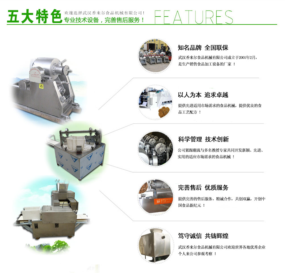 武漢香來(lái)爾食品機(jī)械有限公司成立于2001年2月,是生產(chǎn)銷售休閑食品加工設(shè)備的廠家。公司緊跟市場(chǎng)潮流與華工、華農(nóng)多名共同開(kāi)發(fā)新穎、實(shí)用的適應(yīng)市場(chǎng)需求的食品機(jī)械,自有車、刨、鉆、銑、剪板、折彎等先l進(jìn)機(jī)床100多臺(tái) 套。7年誠(chéng)信通會(huì)員,產(chǎn)品出口拉美、非洲、東南亞、歐洲等很多國(guó)家和地區(qū),國(guó)內(nèi)很多食品企業(yè)都是我們的合作伙伴。目前公司專門設(shè)立一個(gè)的售后 服務(wù)班子,在公司逐步發(fā)展強(qiáng)大的過(guò)程中,一直堅(jiān)持售后服務(wù)的同步發(fā)展,精良的食品設(shè)...